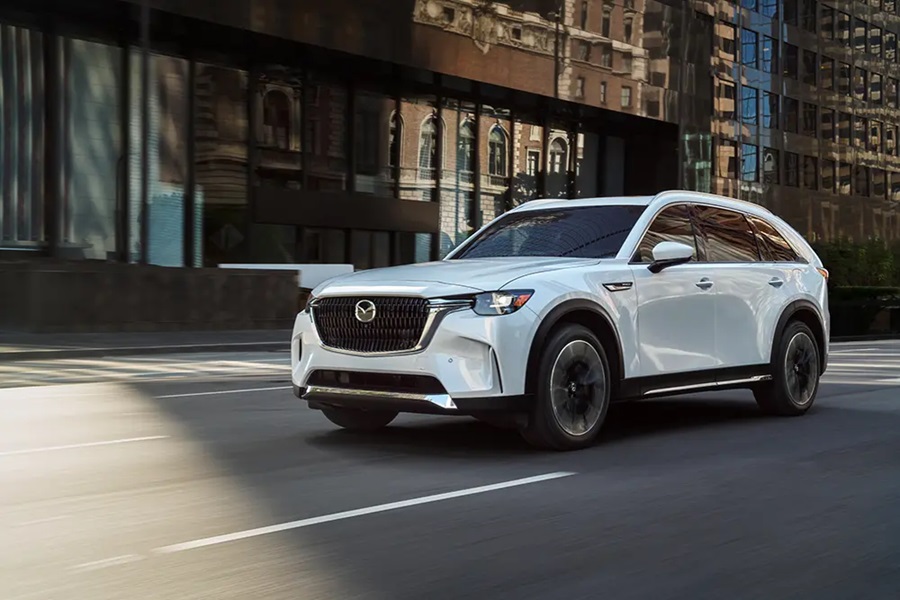 El Mazda CX-90 del 2025, con un precio inicial de $41,820, ofrece suspensión adaptativa que se ajusta en tiempo real a irregularidades. Su motor híbrido suave de 3.3 litros genera 323 caballos de fuerza y 369 libras pie de torque, con 25 mpg.