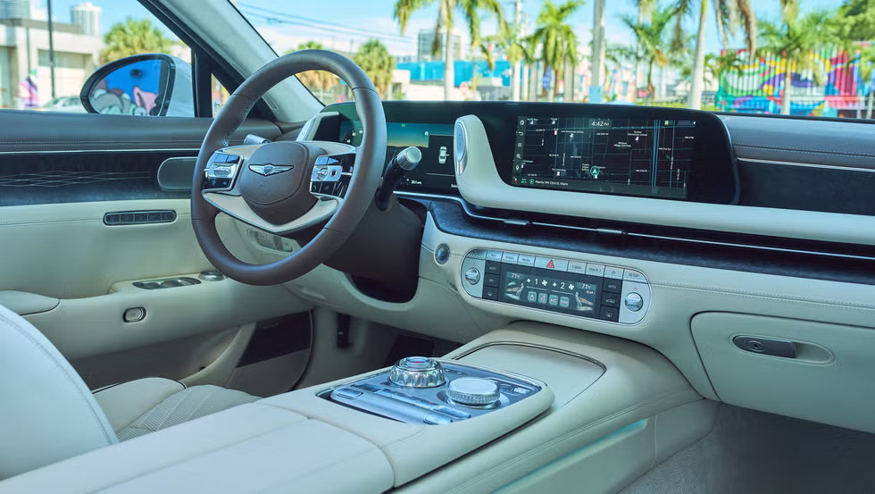 El Genesis G90 del 2025, con un precio inicial de $90,000, ofrece un HUD de 15 pulgadas con AR que proyecta alertas predictivas y rutas en tiempo real.