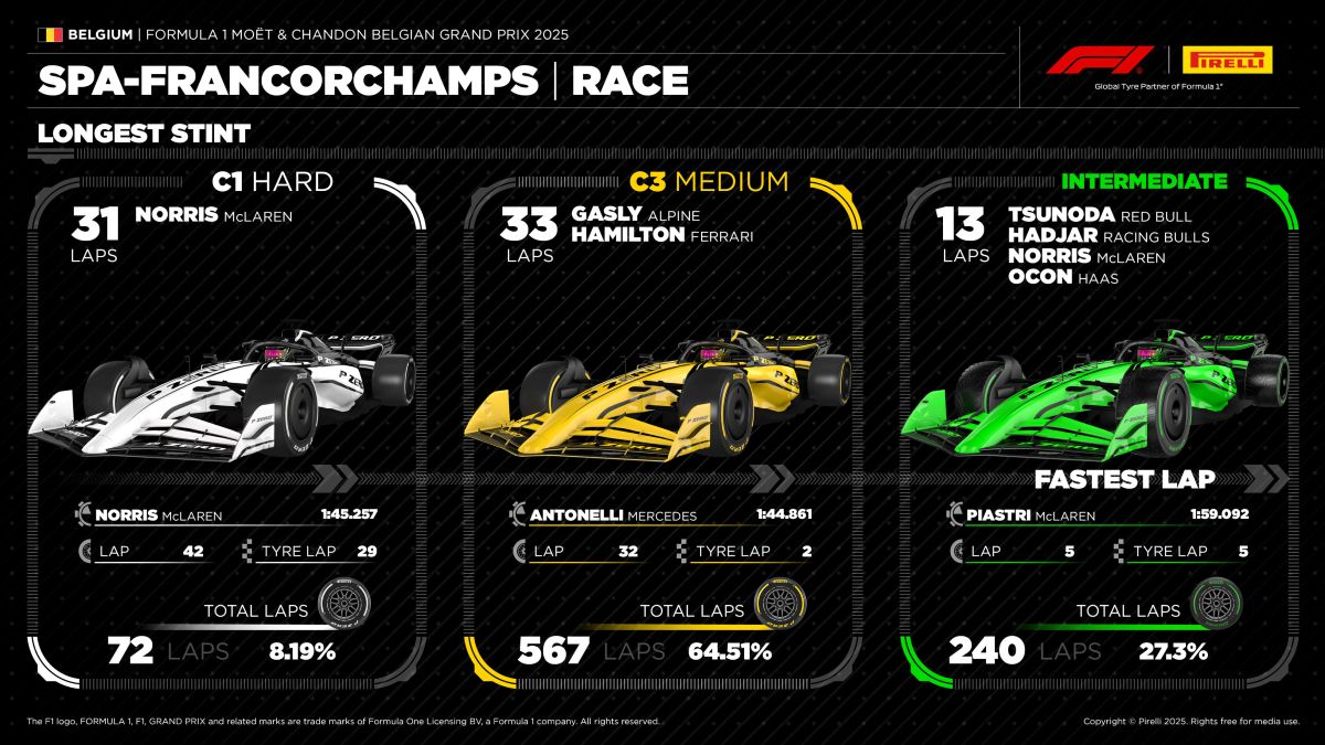 Ha sido la decimoquinta victoria de McLaren en tierras belgas, la primera desde 2012, cuando se impuso Jenson Button. Además, se trata del 55º doblete en la historia del equipo de Woking, el sexto logrado en este circuito.